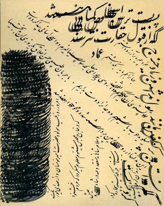 In the final analysis, Emad al-Kottab played two key roles in the history of Iranian calligraphy. The first role was his effort to preserve and transmit the tradition of Nastaliq script within the education system, ensuring that Persian calligraphy did not fade during the period of Western cultural influence, the Constitutional Revolution, and the early Pahlavi era. The second role, which is perhaps even more defining, stems not from his numerous and magnificent manuscripts, but from his diverse and expressive siyah-mashq works, which established him as a calligrapher with a distinctive personal style. These siyah-mashq pieces, which reached a peak of creativity during his imprisonment by the Punishment Committee, continued deliberately and consciously after his release. Building on the foundation laid by Mirza Mohammad Reza Kalleh in the siyah-mashq form, Emad al-Kottab introduced rhythmic and musical qualities to this calligraphic template, enhancing both its aesthetic and expressive dimensions