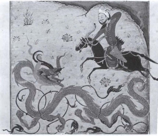 An Artwork from the Medieval Period / Shahnameh: Bahram Gur’s Battle with the Dragon, 772 AH
