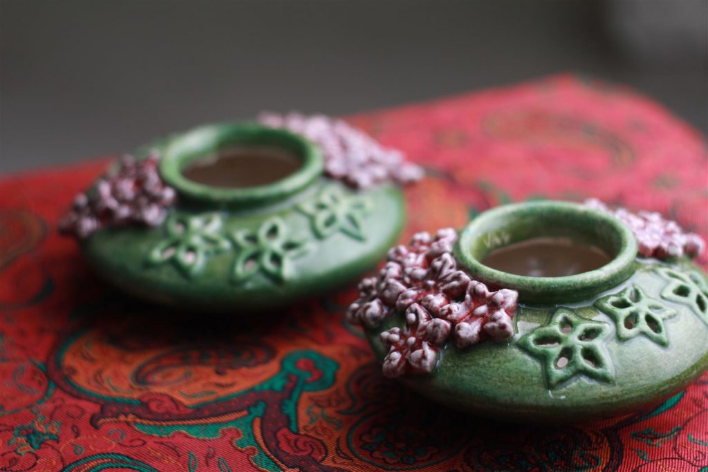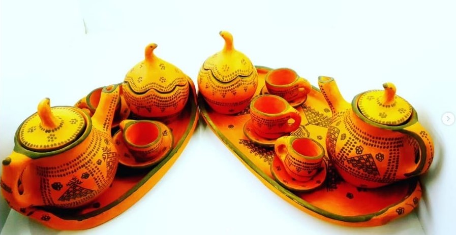 Potters in this region make their ceramics from the locally available red clay. The decoration of the surfaces is done using a pierced (lattice) technique, where patterns are cut into the semi-dry body. These vessels are usually unglazed, and the body retains its natural red color. Most of the potters in this area are women.