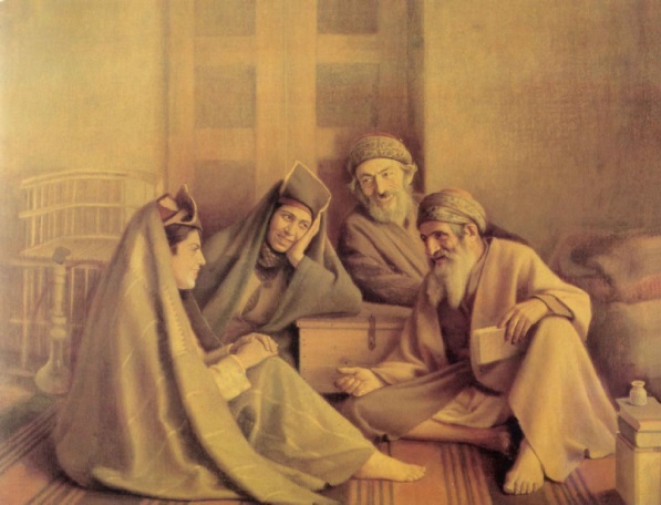 Following this, Kamal-ol-Molk traveled to Karbala, creating two major works that exemplify the height of his artistic mastery and bring his style closer to realism. One of these is “The Jewish Fortune Teller”, which lacks the weaknesses of his earlier works and contains qualities not found in his later pieces. In contrast to the Goldsmith and His Apprentice, the lighting in this work is natural and harmonious, complementing the figures and effectively conveying the affluent lifestyle of the mother and daughter, as well as the humor and liveliness of the fortune teller and her assistant.