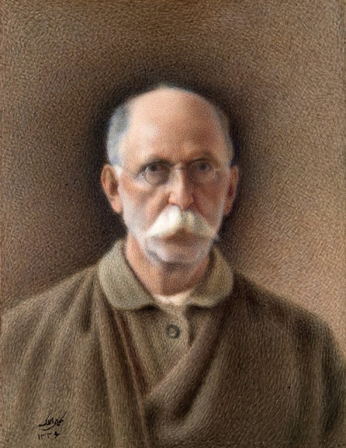 Self-portrait of Kamal-ol-Molk, watercolor, 1336 AH (circa 1917 CE)