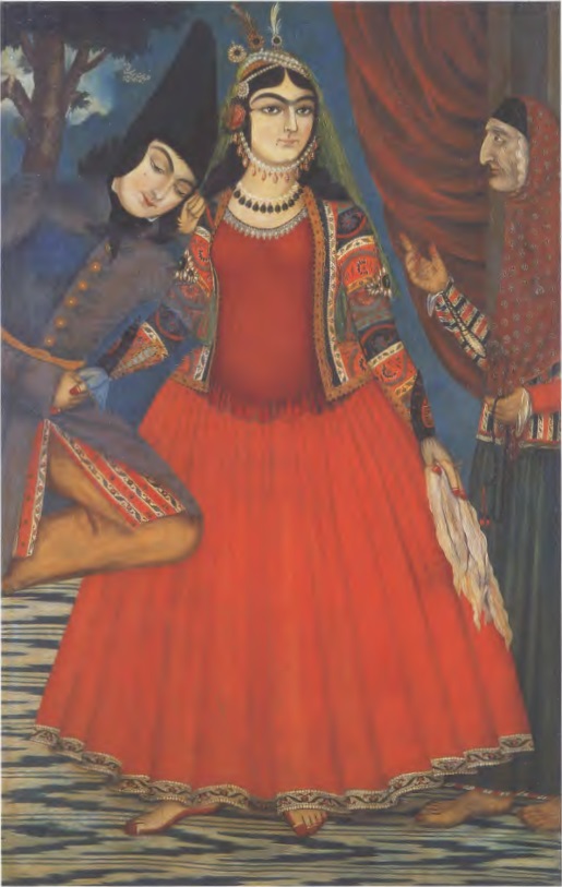 “Two Lovers and an Old Hairdresser,” oil on canvas, 1259 AH, from the collection of Golestan Palace Museum.