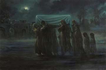 - My corpse should be carried to the graveyard at night. Thus, Imam Ali (as), in compliance with her will, performed all the funeral rites and accompanied exclusively by her relatives and sons carried her at night to Jannatu’l-Baqi `, where she was laid to rest and her wishes fulfilled. The commander of the faithful (AS) said on the occasion of the burial of Supreme lady Fatima (SA) while addressing the Holy Prophet at his grave, O' Prophet of Allah! Please accept my salutation and those of your daughter who is being buried not far from you, and who is to meet you so quickly. O the chosen Apostle! The death of your daughter has left me without patience and solace. I have lost my self-restraint and the power of endurance.