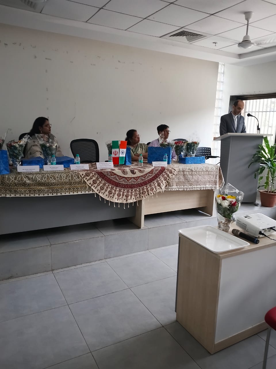 The program opened with a welcome address by Dr. Sakina Khan, who expressed her delight at the presence of Mr. Mohammad Reza Fazel. She highlighted the role of the Department of Persian Language and Literature and acknowledged the tireless efforts of the Iranian Cultural House in organizing the workshop. She emphasized that without the support and encouragement of the Cultural House, such initiatives would not have been possible.