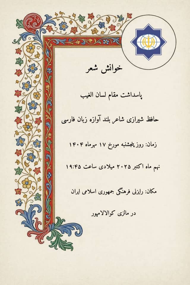 Preservation of Hafez and at the Cultural Center of the Islamic Republic in Kuala Lumpur Oct 25 2025 - 10:32 - Number of visits: 6 - News code : 26258 - Newsgroup : KualaLumpur - Number of comments : 0