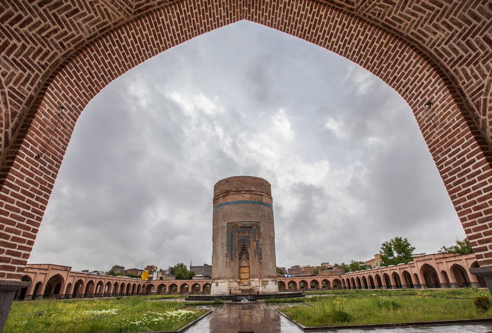 The Tomb of Sheikh Heydar, attributed to the father of Shah Ismail I, is a brick structure. Externally, it is shaped like a cylindrical tower over 18 meters high with tile decorations, while internally it has a dodecagonal (12-sided) layout. The tomb is part of the Sheikh Heydar Complex, which was once the old cemetery of Meshginshahr.