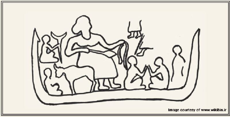 A clay tablet discovered in Choghamish depicting a boat and its passengers.