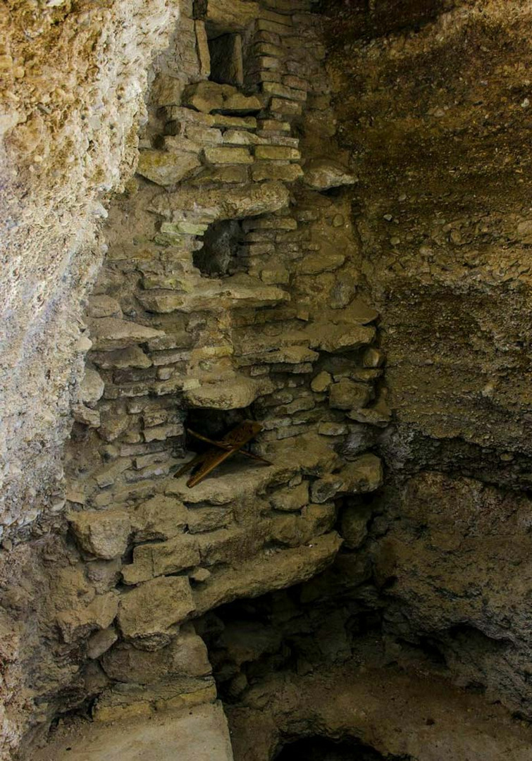 One of the most remarkable features of the Vazvan Qanat is its underground dam, locally known as the “Band-e Qanat.” This dam consists of a tall and thick wall made of stone and sarooj (a traditional Iranian mortar made from lime and clay). The dam retained water behind it, ensuring a supply during the dry seasons. Residents of Vazvan would block the water channel and the seven sluices of the dam from Azar (mid-November to mid-December) to Farvardin (mid-March to mid-April), a period of lower water demand, to allow water storage. Calculations indicate that during this period, the volume of water stored behind the dam could reach over 400,000 cubic meters. A geological fault in this section likely serves as a natural reservoir, where the excess water is stored.